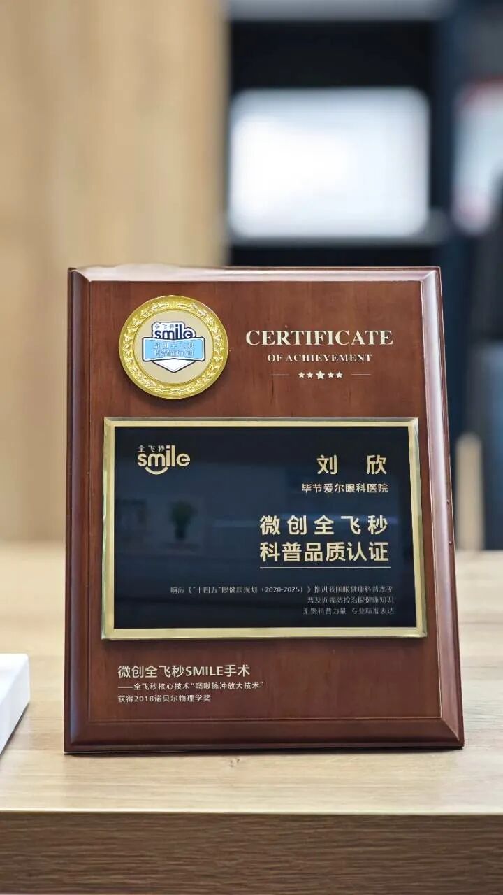 在严格的考核标准背后,获得此项荣誉,意味着刘欣院长的专业水平及毕节爱尔眼科医院的标准化服务,得到了权威机构的认可。