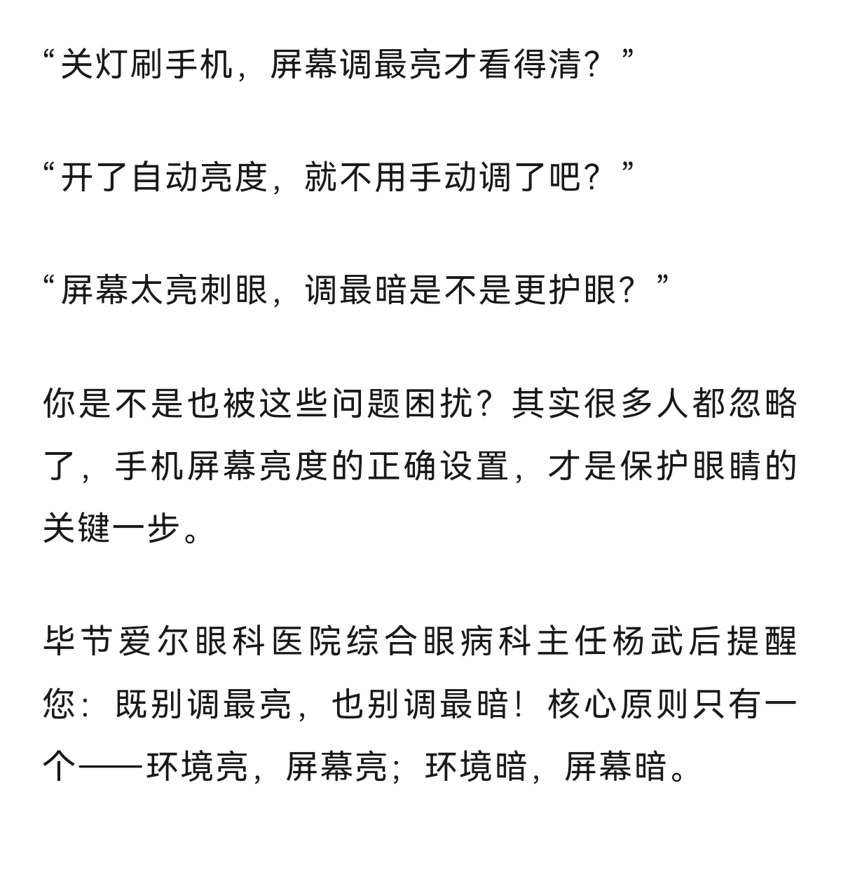 关灯玩手机,屏幕亮点好还是暗点好?