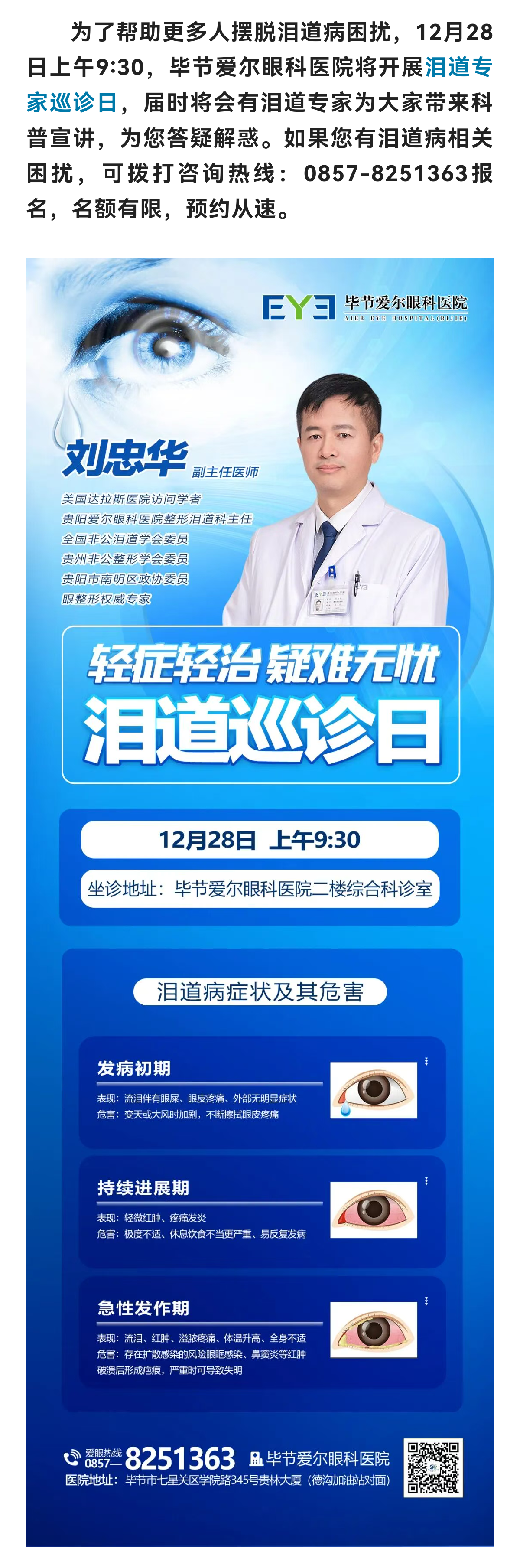 [专家巡诊]泪道疾病不容忽视,12月28日名医巡诊日!